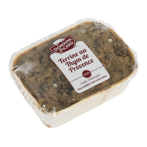 Utilisez la terrine au thym, coupez de fines tranches et disposez des lamelles de cornichons sur le dessus de votre petite terrine ! Utilisez quelques billes de mozzarella pour une petite touche de douceur !